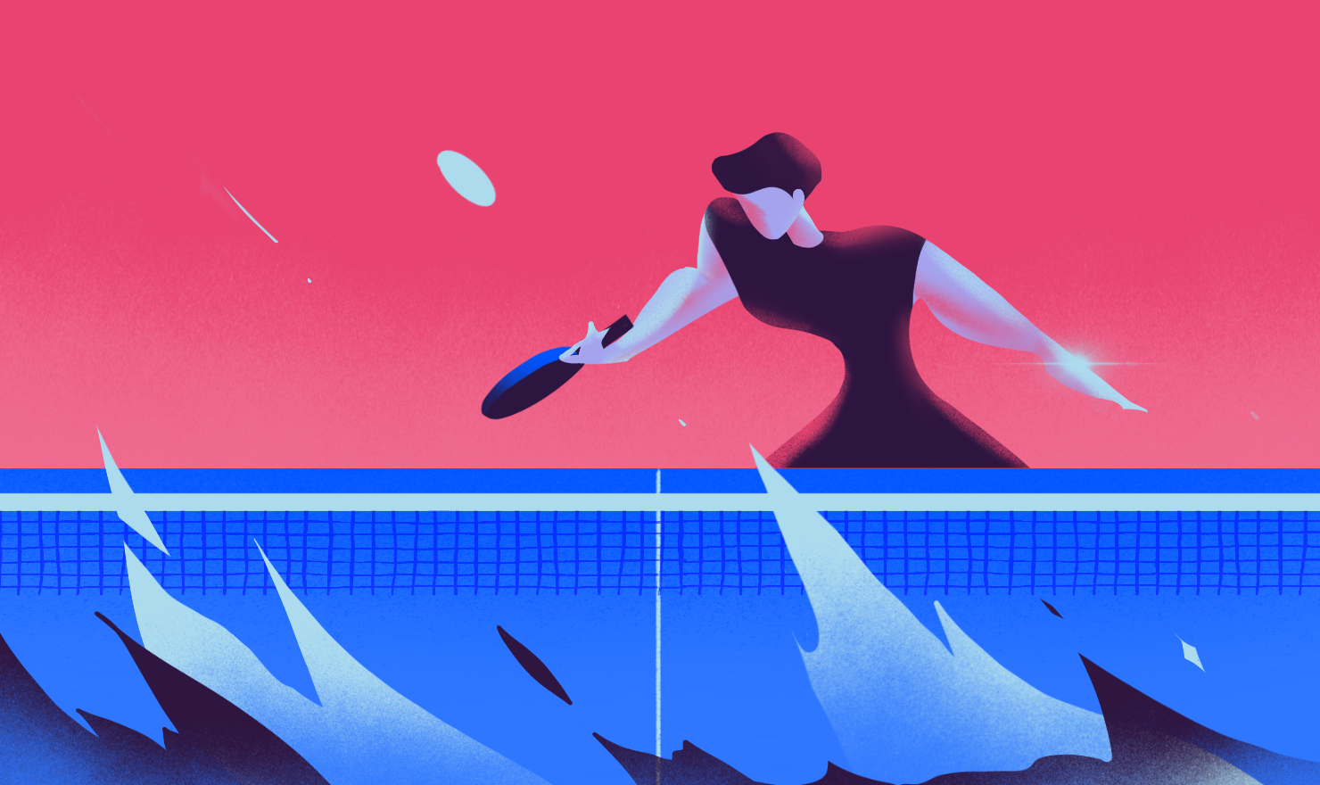 Watching the players on the court, I felt that the human beings in sports were so moving and beautiful... really want to capture these moments. Sometimes we are like athletes, overwhelmed with difficulties and crossing over obstacles in life. There may be moments that are worth fighting for. The characters were designed to be minimal to contour the beauty of stretching muscles while the bold, blue-gradient background contrasts the graceful athletes on the sports field. The subtle lighting and curvy smokes enable viewers to sense the sparking moment in the air.
